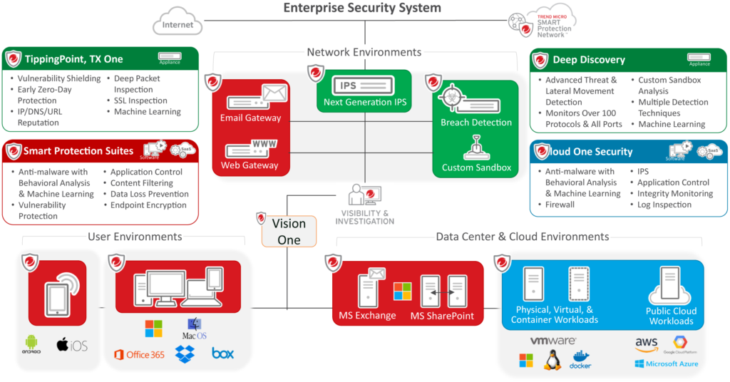 The Trend Micro Network Defence Solution is a family of security products that enable you to rapidly detect, analyse, and respond to targeted attacks and advanced threats. Trend Micro™ Deep Discovery™ is an advanced threat protection platform that enables you to detect, analyse, and respond to stealthy, targeted attacks. It uses specialized detection engines, custom sandboxing and global threat intelligence from the Trend Micro™ Smart Protection Network™ to defend against attacks that are invisible to standard security products. Deep Discovery uniquely detects and identifies evasive threats in real time, then provides the in-depth analysis and relevant actionable intelligence that will protect your organization from attack. TippingPoint Next-Generation Intrusion Prevention System and Advanced Threat Protection TippingPoint is a proven wire-speed Next-Generation Intrusion Prevention System that proactively detects and prevents vulnerabilities, network exploits, and delivers identity and application awareness to enable contextual visibility and enforcement. Integrated network-wide breach detection identifies targeted attacks and advanced threats, including proactive threat prevention through integration with the TippingPoint Next-Generation Intrusion Prevention System, Trend Micro, and third-party security investments.